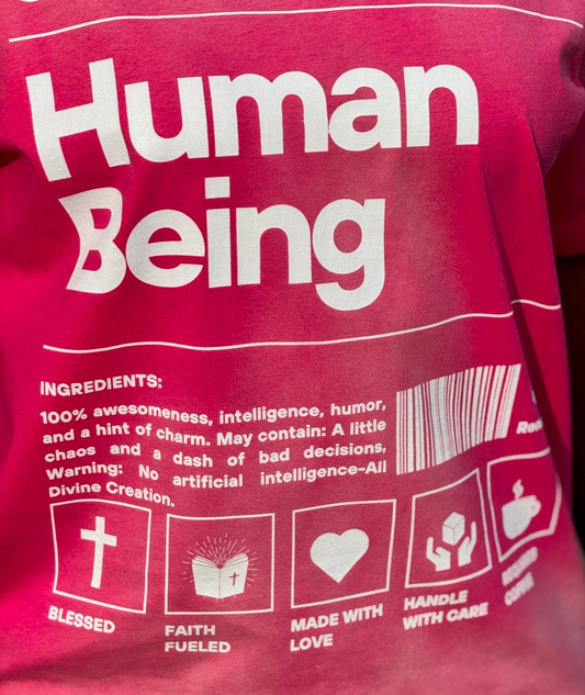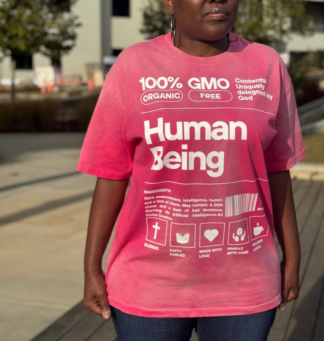 Human Being - 100% GMO Free" Vintage Oversized Pink Unisex T-Shirt