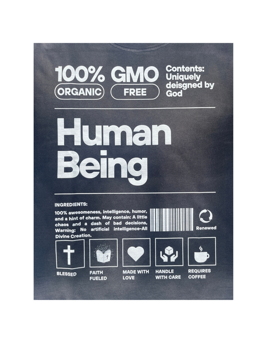 Human Being - 100% GMO Free" Vintage Oversized Black Unisex T-Shirt